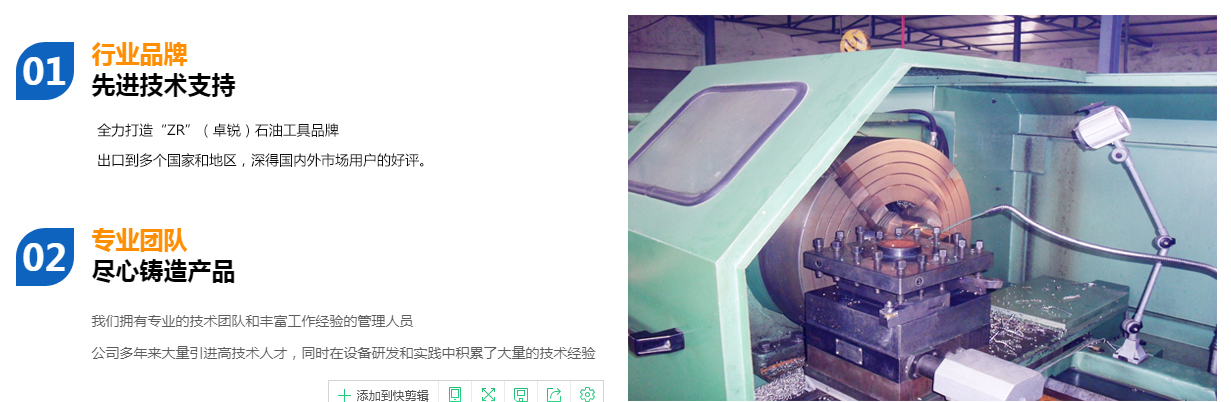 德州卓銳石油機(jī)械有限公司成立于2008年10月,專業(yè)生產(chǎn)螺桿鉆具拆裝架、無磁懸掛短節(jié)、螺桿鉆具配件、螺桿清膠機(jī)、PDC平面軸承、可調(diào)鉆具配件、360度全旋轉(zhuǎn)拆裝架、螺桿鉆具整機(jī)試驗(yàn)臺、螺桿鉆具馬達(dá)試驗(yàn)臺、渦輪鉆具配件、等壁厚螺桿定子加工機(jī)床、等壁厚螺桿鉆具等石油鉆井工具,打撈工具,固井工具及其配件。公司確立并始終堅(jiān)持不懈地發(fā)揚(yáng)“誠信,務(wù)實(shí),高效,創(chuàng)新”的企業(yè)精神全力打造“ZR”(卓銳)石油工具品牌。業(yè)務(wù)實(shí)現(xiàn)了快速發(fā)展,并得到業(yè)內(nèi)人士的廣泛認(rèn)同,成為石油裝備制造業(yè)一顆璀璨的新星。